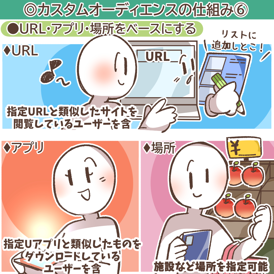 広告配信対象者を拡大したい場合に「URL・アプリ・場所」を活用するのが効果的です。