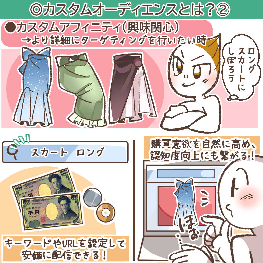 カスタムアフィニティは、より詳細なターゲティングを行いたいときに役立ちます。