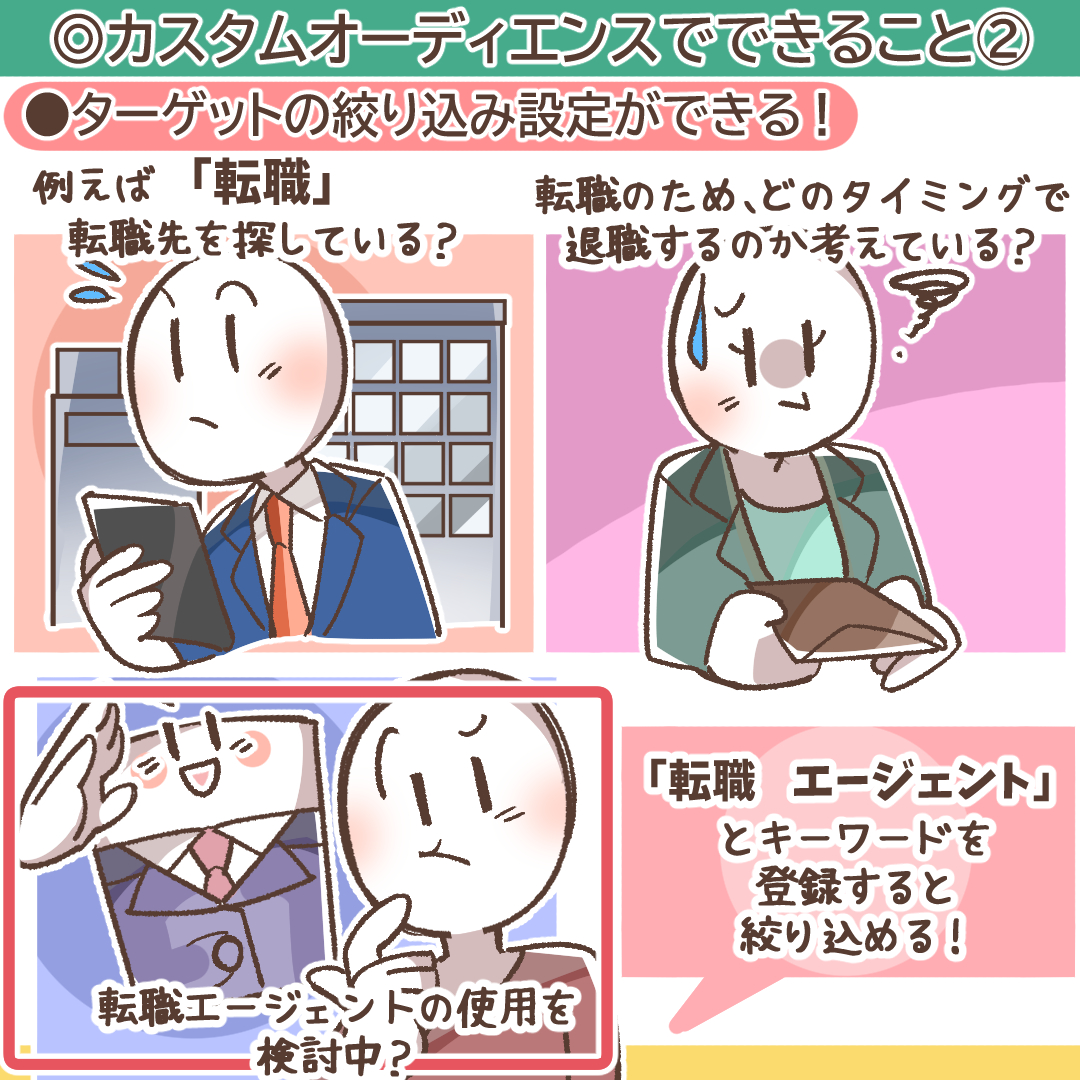 より詳細にターゲットを絞りこめるGoogle広告の機能である「カスタムオーディエンス」。