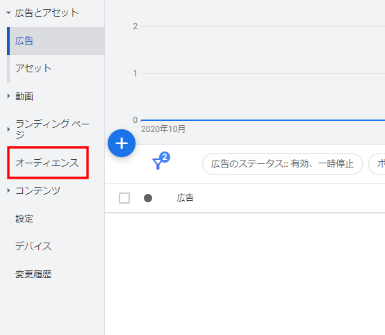 - 設定対象の広告グループを選択して「オーディエンス」をクリック