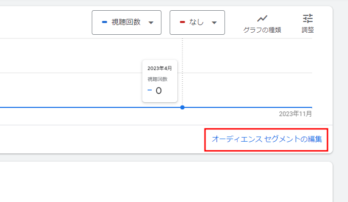 - 画面右側の「オーディエンスセグメントの編集」を選択して編集画面を表示