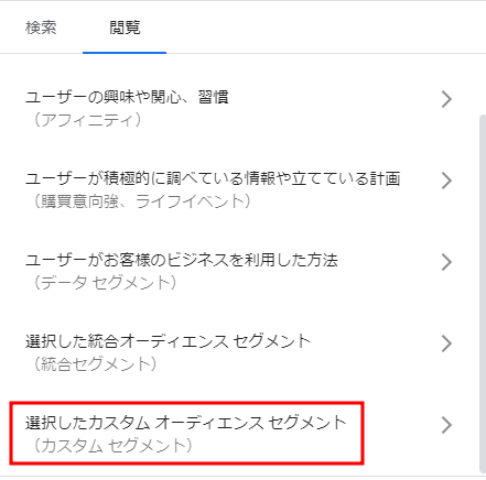 そして2020年9月に「カスタムアフィニティ」と「カスタムインテント」が統合されてできた機能が「カスタムオーディエンス」です。