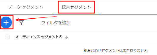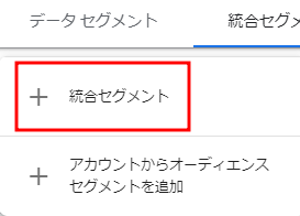 - 「統合セグメント」タブを選択して「+(プラス)」ボタンをクリック