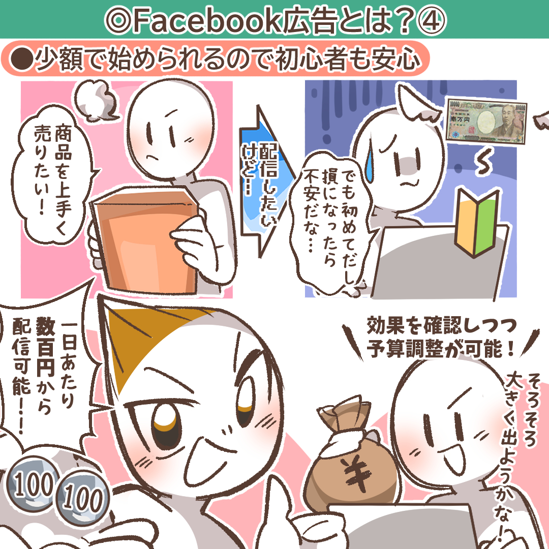 Facebook広告を配信するにあたって高額な費用は必要なく、1日あたりなんと数百円からでも配信が可能になっています。