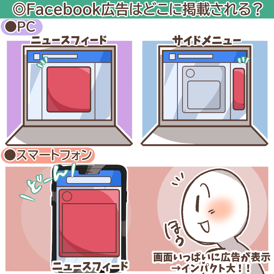 Facebook広告はPCやスマートフォンなどデバイスによって表示場所が異なります。どんな違いがあるのかをご紹介します。