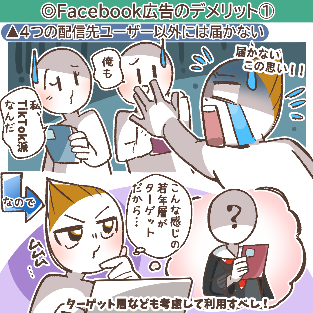 Facebook広告は利用しやすくメリットも多いですが、全てのビジネスにFacebook広告が効果的とは言えない一面もあります。