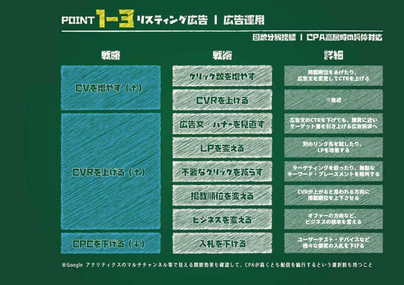 - CVRの改善: 上記のLPOを徹底的に実施します。