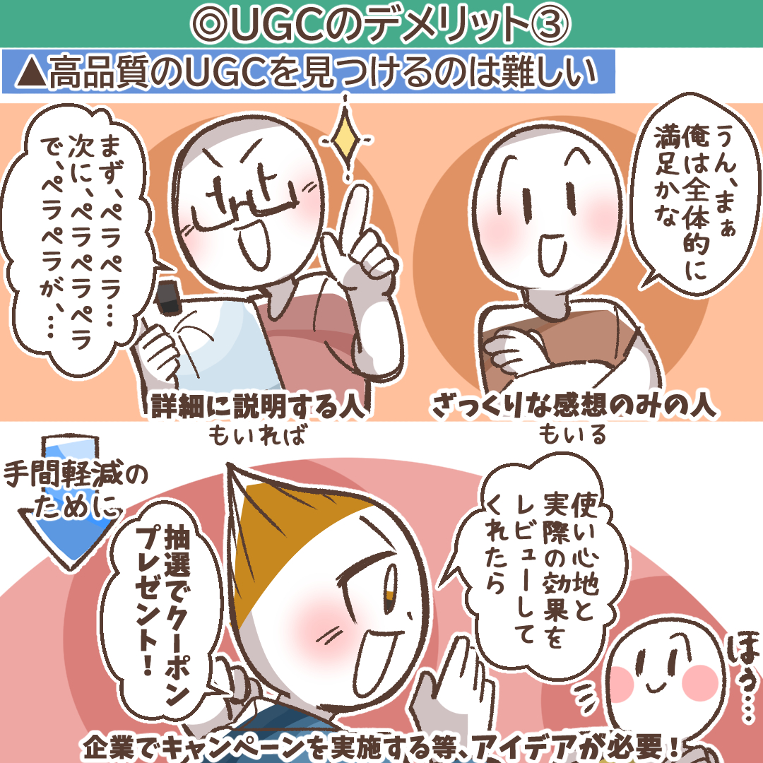 多くのメリットを持つUGCですが、その活用にはいくつかのデメリットや課題も存在します。これらを事前に理解し、対策を講じておくことが、UGCマーケティングを成功させる上で不可欠です。ここでは、実践において直面しがちな3つの主要なデメリットとその対策について解説します。