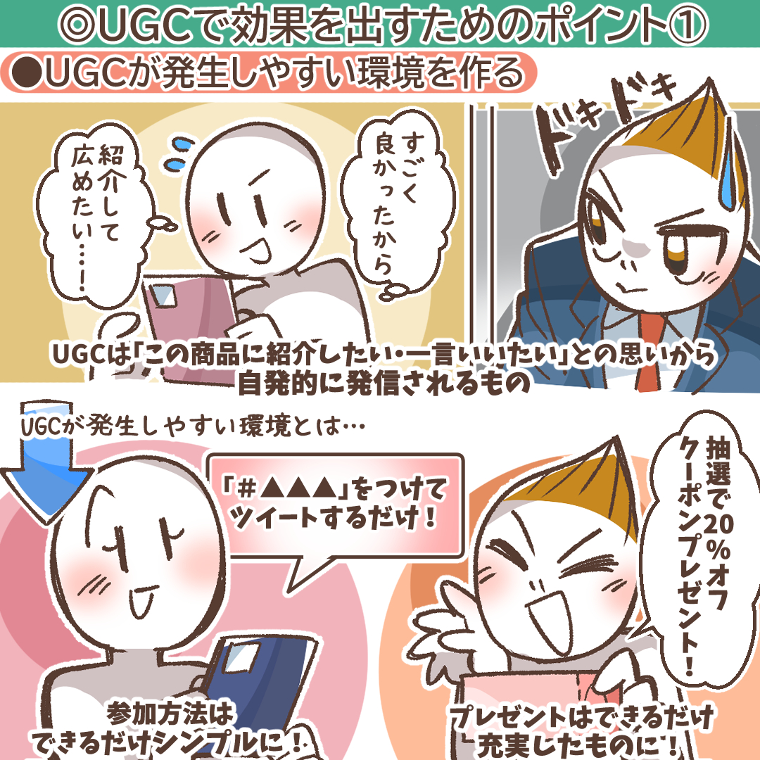 - 投稿後のコミュニケーション: ユーザーが投稿してくれたUGCに対して、企業の公式アカウントから「いいね!」や感謝のコメントを返すことも重要です。自分の投稿が企業に認知されたという喜びは、次のUGC生成へのモチベーションに繋がります。