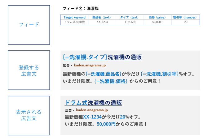 また、データフィードと組み合わせることで、より高度な使い方も可能です。
