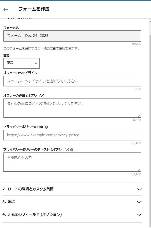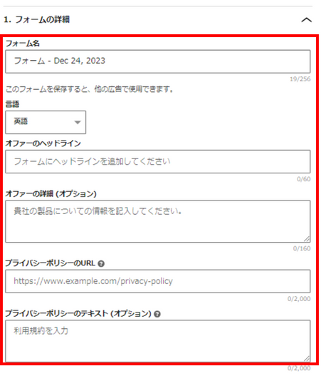 一方でリードの質にばらつきが出たり、LPがないため自社商材の魅力を存分に伝えきれなかったりするので、フォームの項目の内容やクリエイティブを工夫しましょう。