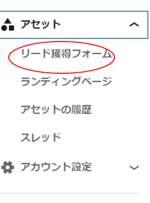 アセットの場合は、素材を経てインスタントフォームのリストへ移動しましょう。