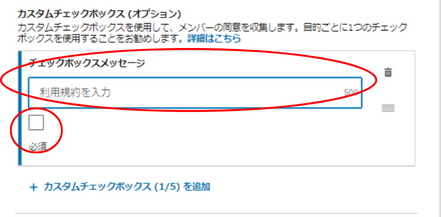 カスタム免責事項によって「利用規約に同意しました」のように、フォーム送信前にユーザーへの免責事項を表示させられます。