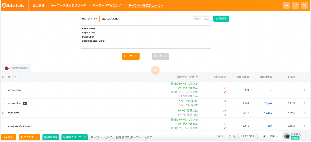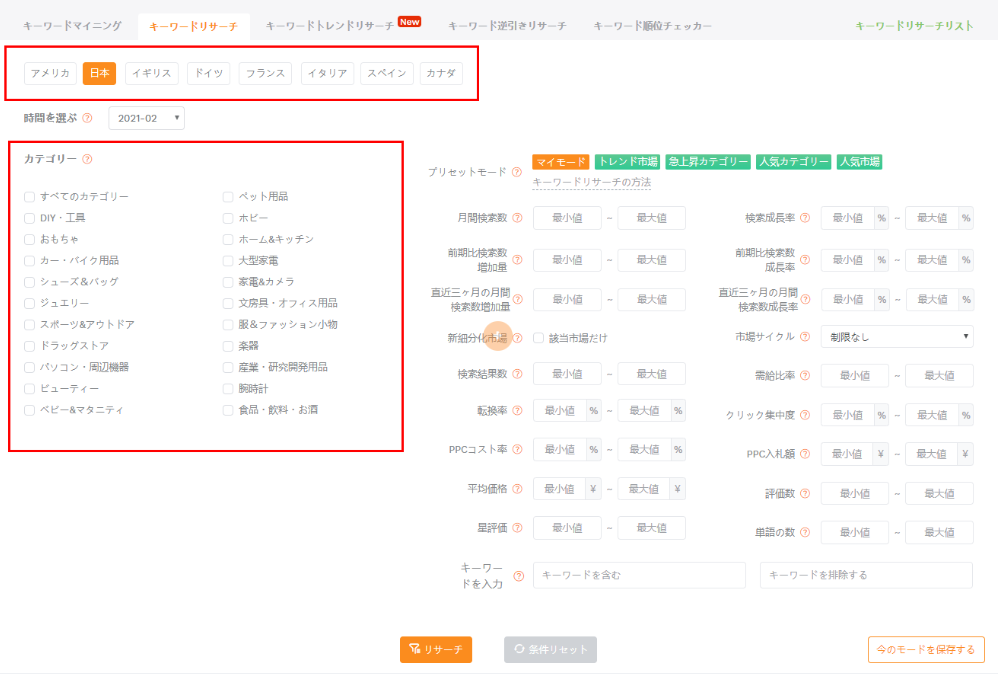 セラースプライトでは、特定の地域や言語に関連するキーワードリサーチを行うことができます。必要に応じて、地域や言語の設定を行います。