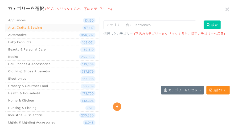 上記を指定することで、商品ごとの市場規模を効率的に分析可能。リサーチ結果をもとにどの市場に参入するかの目安になります。