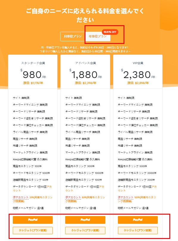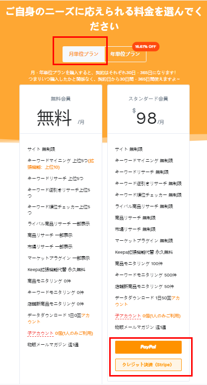 セラースプライトには月額で払えるプランと、年額で払うプランの2種類があります。
