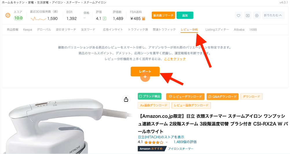 | レビュー分析 | Googleの拡張機能で使用できる機能であり、商品レビューを分析して情報収集できる機能 |