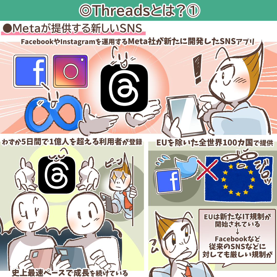 新たなSNSサービスであるThreads(スレッズ)の利用が可能となるのは少し先の話になるかもしれませんね。