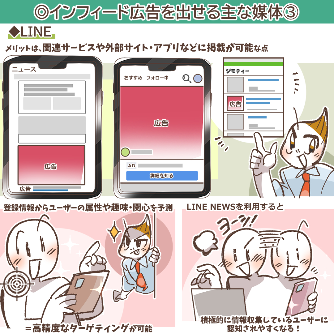 LINE広告に関してさらに知見を深めたい方は、以下の記事に総括的にまとめてありますので、ぜひ読んでみてください。