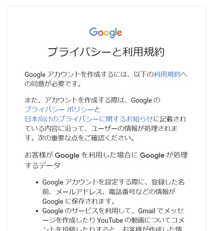 Googleアドセンスを利用するためには、Googleアカウントが必要です。まだGoogleアカウントを持っていない人は作成しましょう。以下にGoogleアカウントの作成手順をご紹介します。