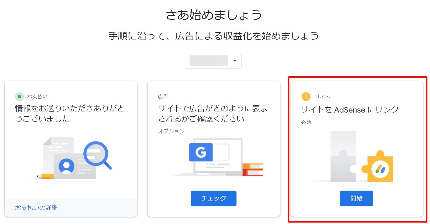 Googleアドセンスとサイトを紐づけるため、サイトにGoogleアドセンスのコードを貼り付ける手順に移ります。