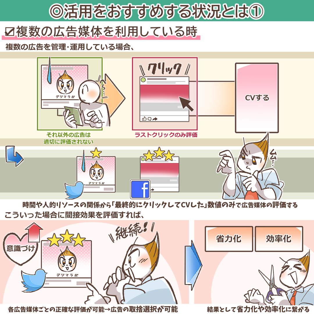 - 広告の「間接効果」を定量的に可視化し、機会損失を防ぐ