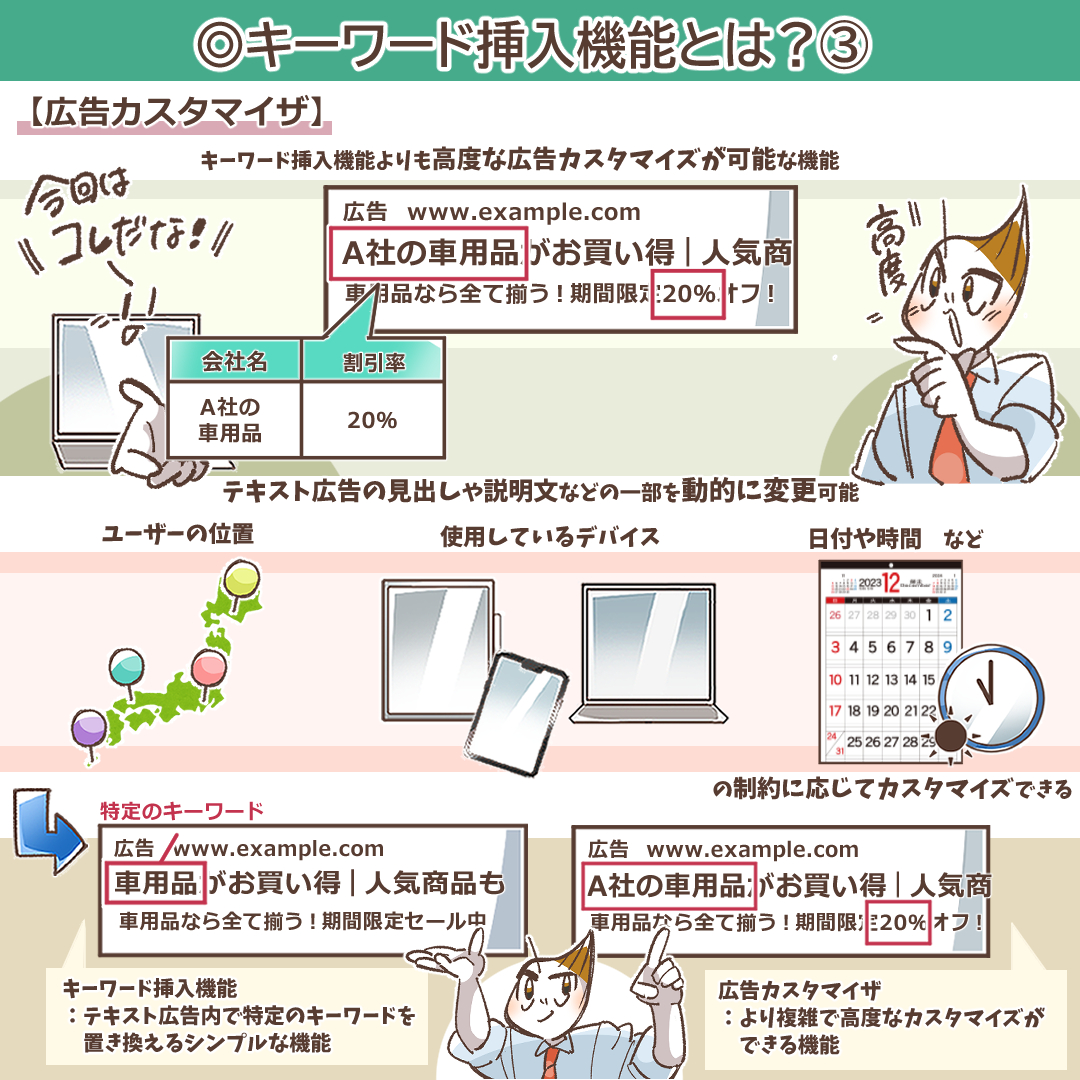 キーワード挿入機能・広告カスタマイザ・動的検索広告(DSA)の戦略的な使い分け