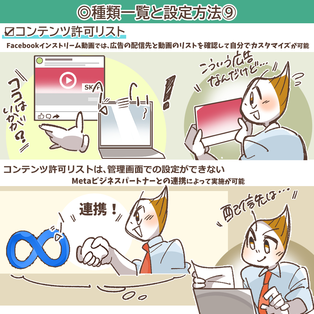「コンテンツ許可リスト」は、前述のパブリッシャー許可リストをさらに一歩進め、特定の「動画コンテンツ」単位で広告の配信先を管理する、最も高度なブランドセーフティ機能です。この機能の利用には、Meta社のビジネスパートナーとの連携が必須となり、広告主が独自に管理画面で設定することはできません。特定の動画クリエイターが作成した、品質が保証された動画コンテンツのリストに対してのみ広告を配信するといった、極めて精緻なコントロールが可能になります。大規模な予算を投下するナショナルクライアントや、ブランドイメージの維持が事業の生命線となる企業が、究極の安全性を求めて採用する選択肢と言えるでしょう。