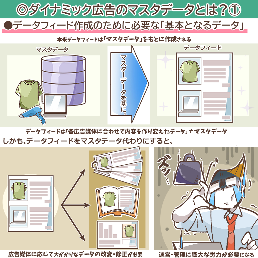 しかし、ダイナミック広告のデータフィードを作成する時の基本になる「マスタデータの重要性」については、あまり気にしていない…という方は少なくありません。