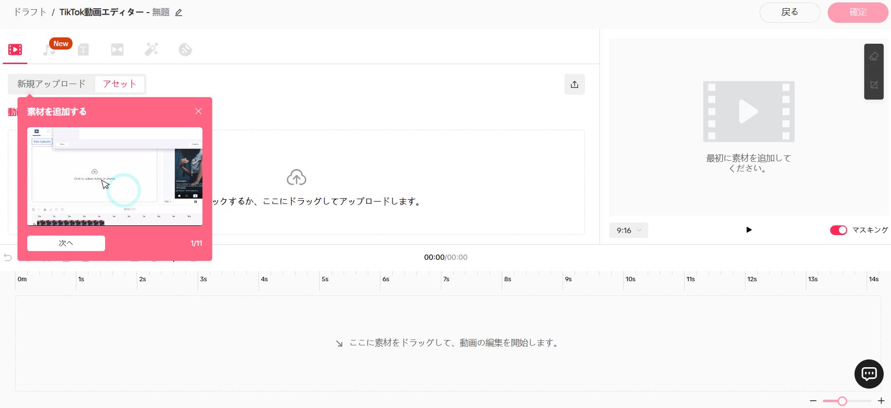 動画エディターは、既にご紹介した簡易的な作成機能よりも、動画を細かく、かつ直感的に編集するための中心的な機能です。一般的な動画編集ソフトで広く採用されているタイムライン形式が用いられており、他のソフトでの編集経験がある方であれば、違和感なく操作を開始できるでしょう。初めての方でも、視覚的に理解しやすいインターフェースになっています。