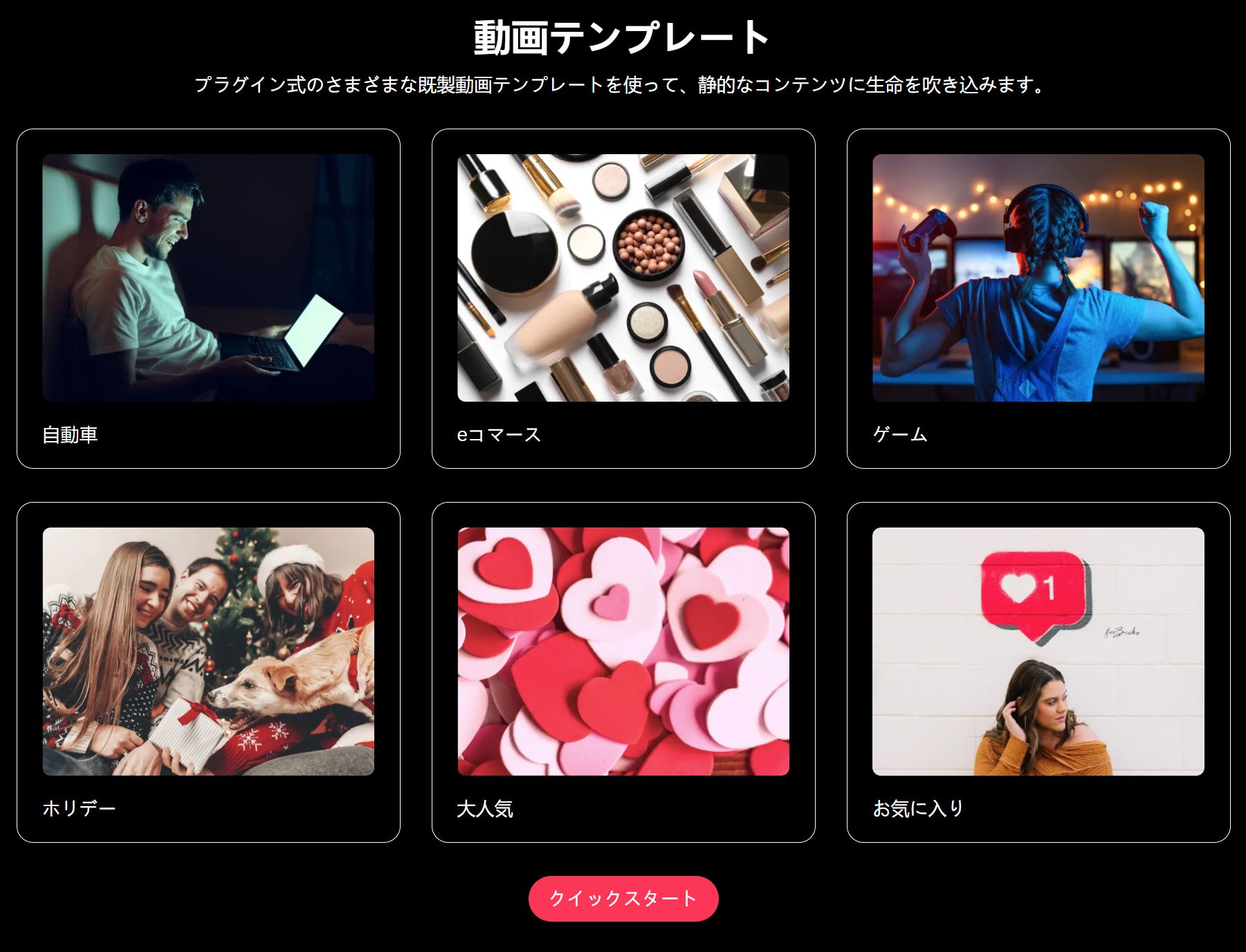 - プロがデザインしたテンプレートを用いた迅速な動画作成