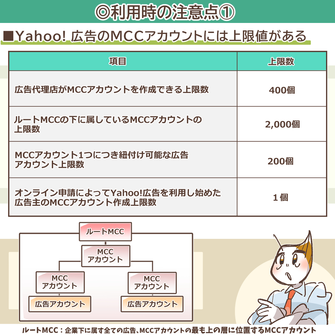 ・Yahoo! 広告のMCCアカウントには上限値がある