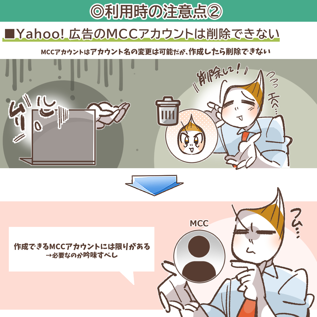 ・Yahoo! 広告のMCCアカウントは削除できない
