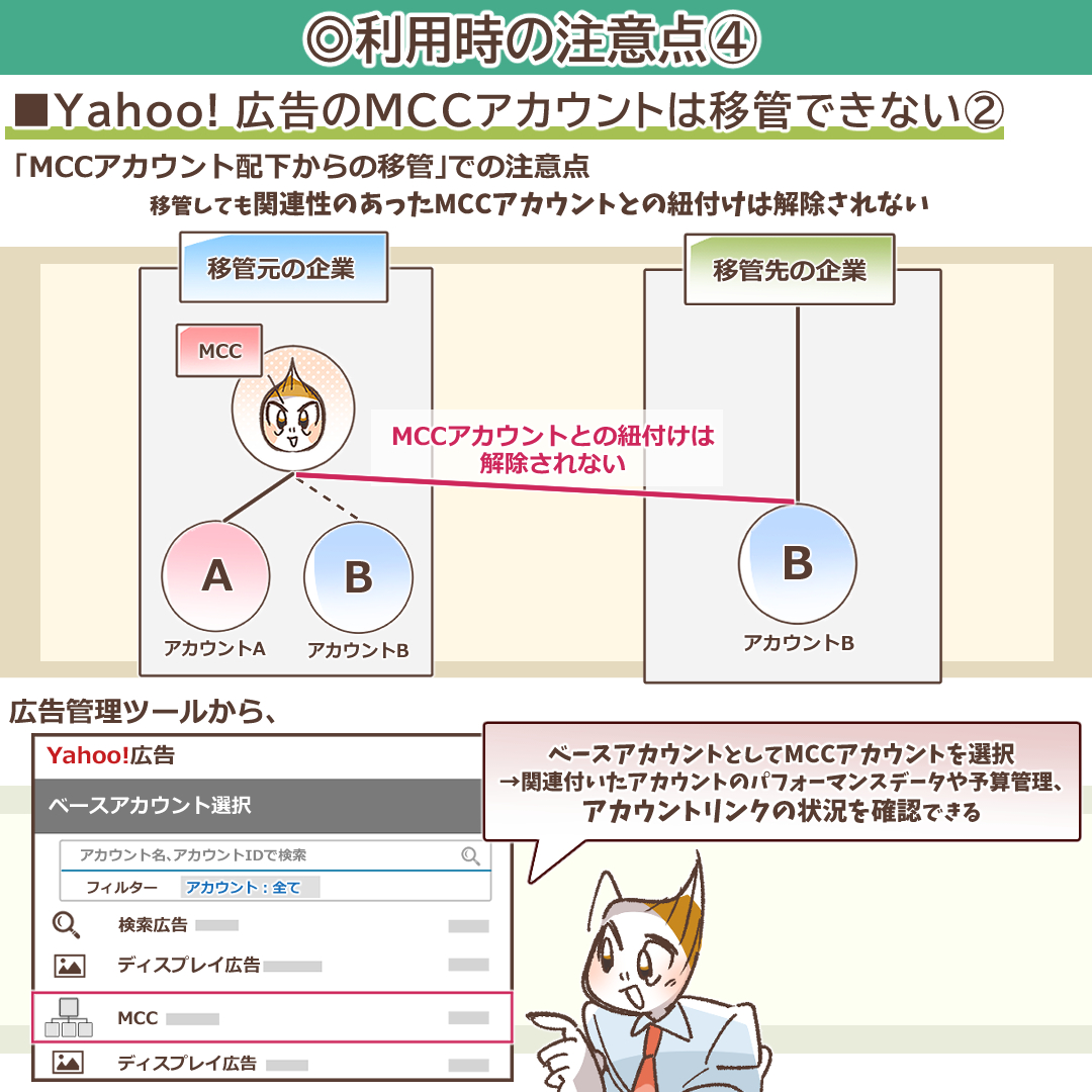・Yahoo! 広告のMCCアカウントは移管できない