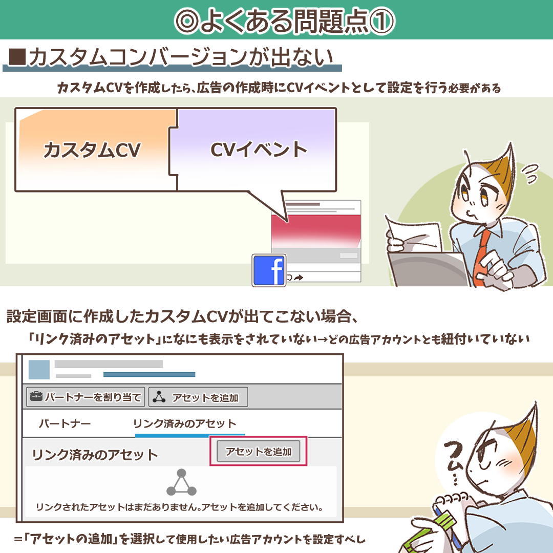 問題1:「作成したカスタムコンバージョンが広告設定画面に出てこない」