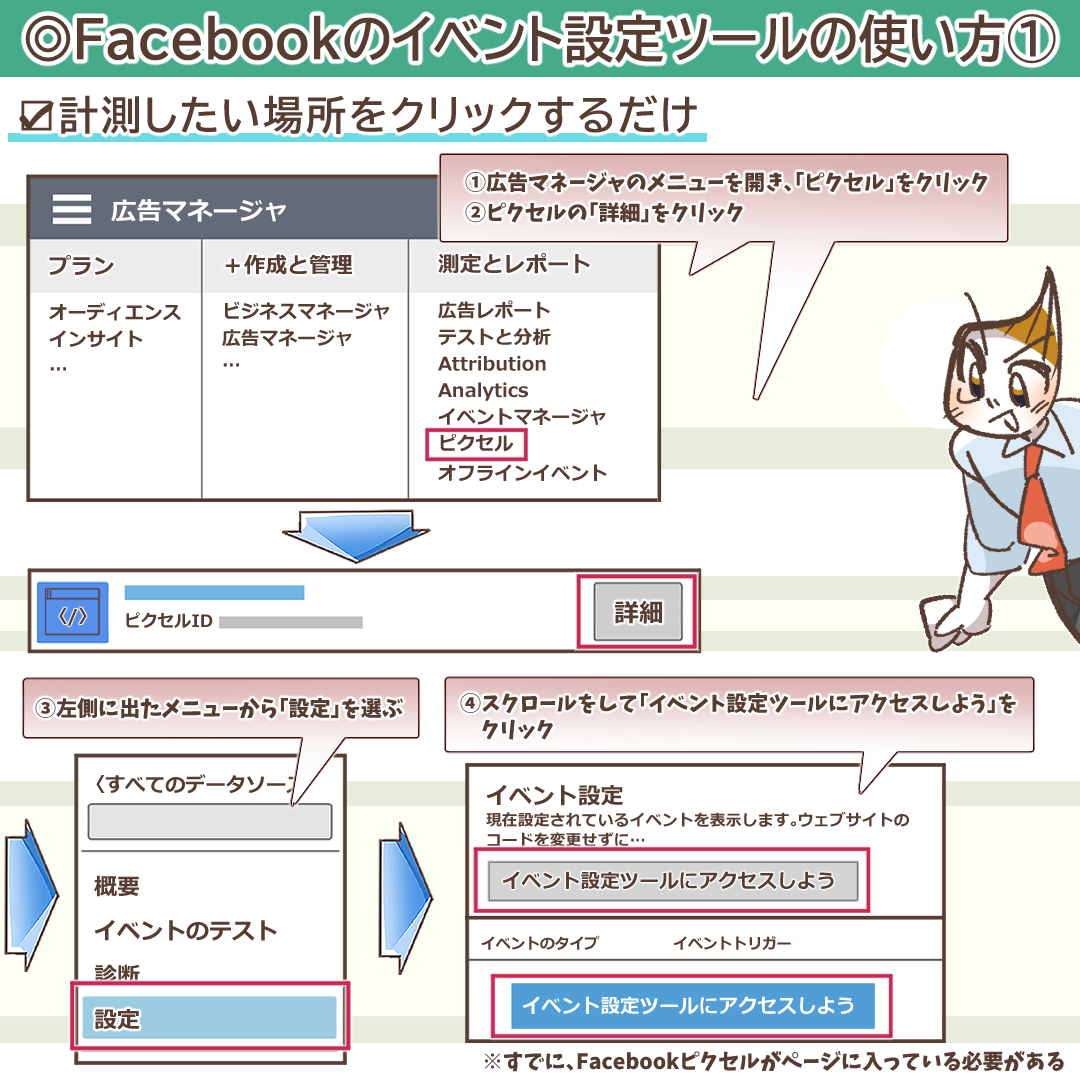 これまで解説してきたイベント設定ツールやカスタムコンバージョンといった機能はすべて、ある一つの土台の上になりたっています。それが「Metaピクセル」です。Metaピクセルを理解せずして、効果的なイベント計測はありえません。