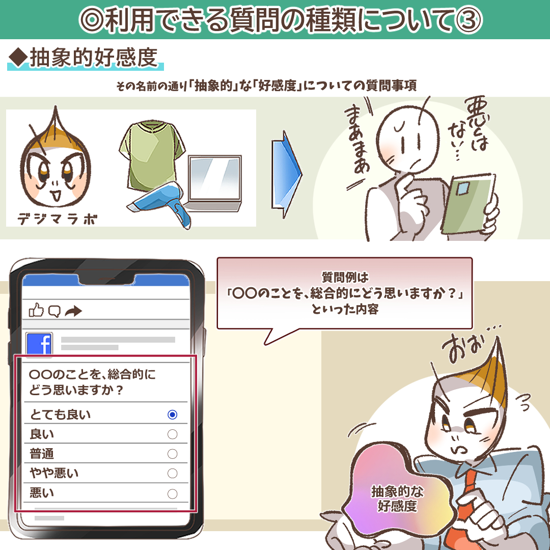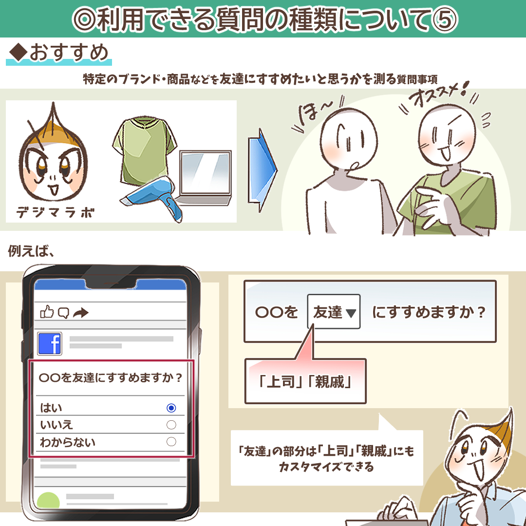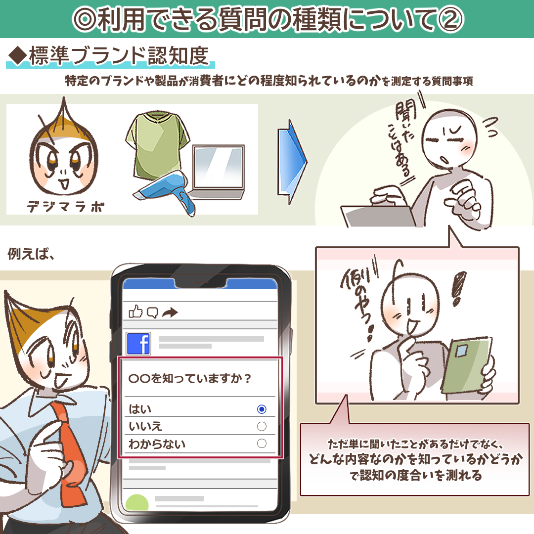Facebookのブランドアンケートテストで利用できる質問の種類について