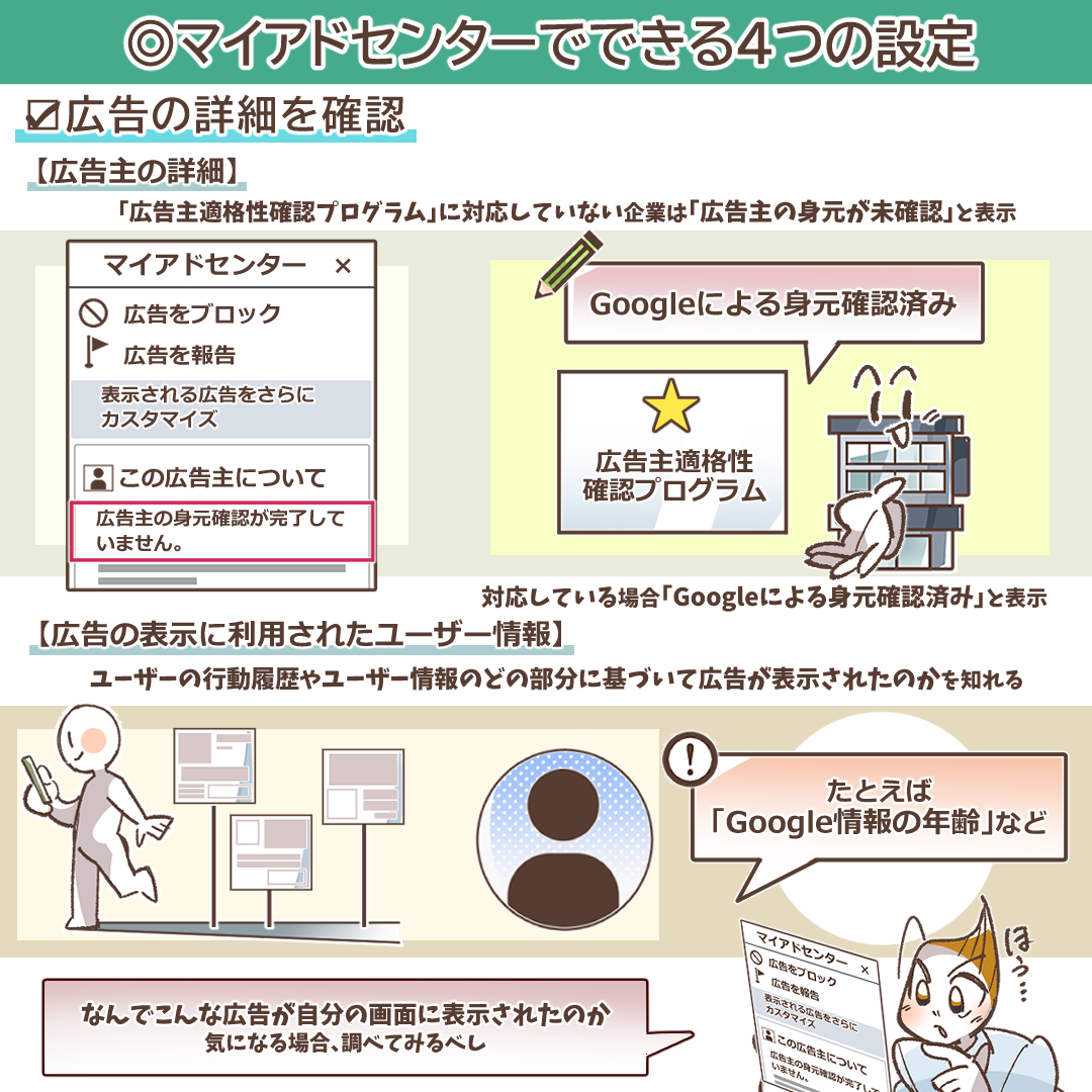 また表示された広告主が信頼のおける企業なのか、自分のどの情報を利用して表示された広告なのかがわかれば、安心できますよね。