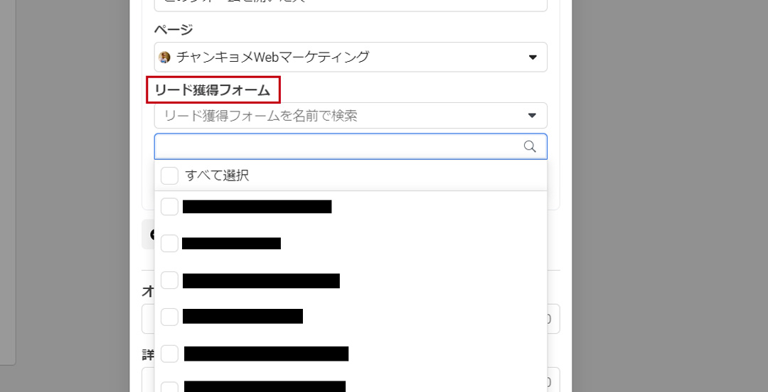 使用するリード獲得フォームを選択して、チェックを入れます。