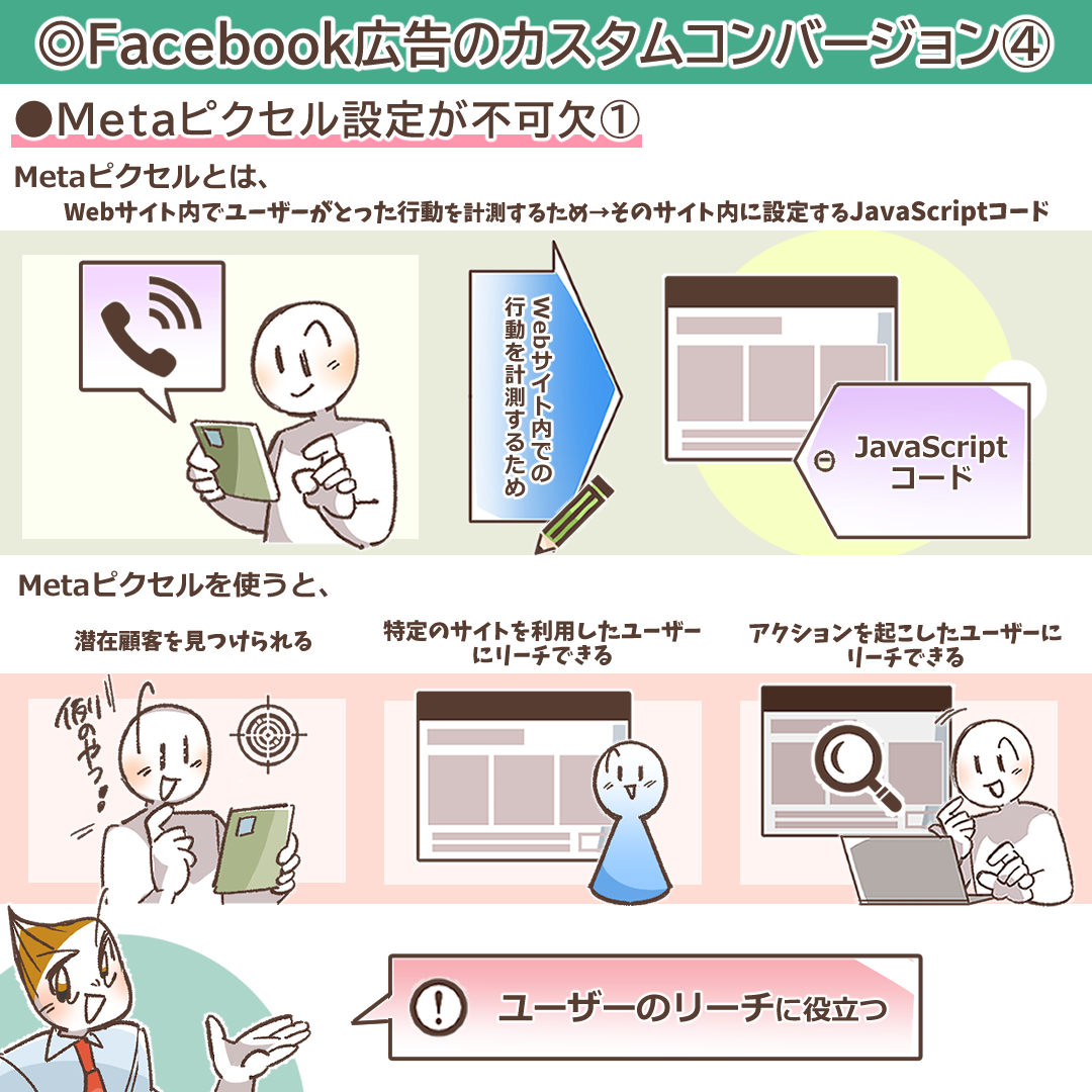 注意点②:前提として「Metaピクセル」設置の知識は不可欠である