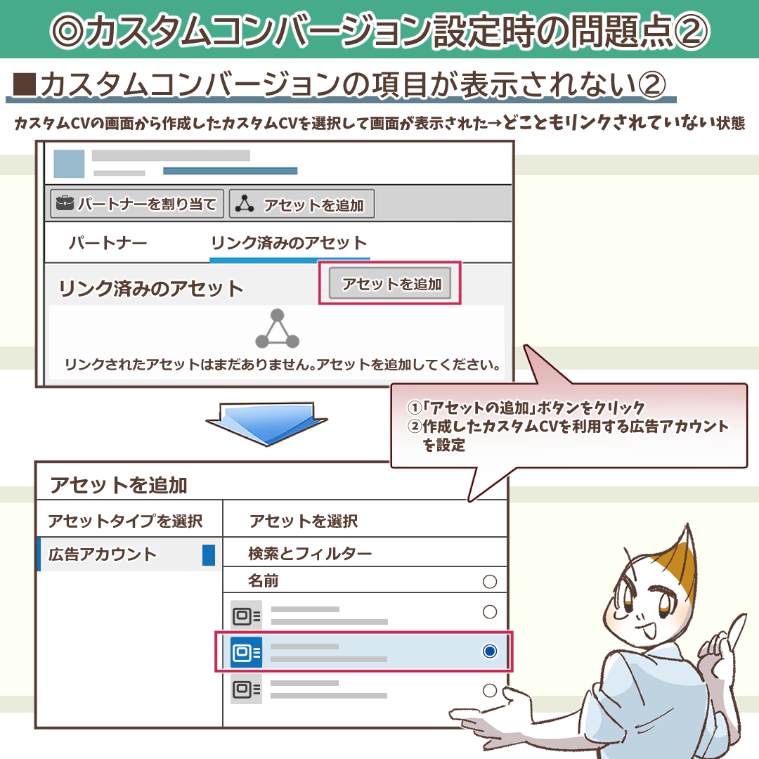 問題点①:広告作成画面で作成したはずのカスタムコンバージョンが表示されない
