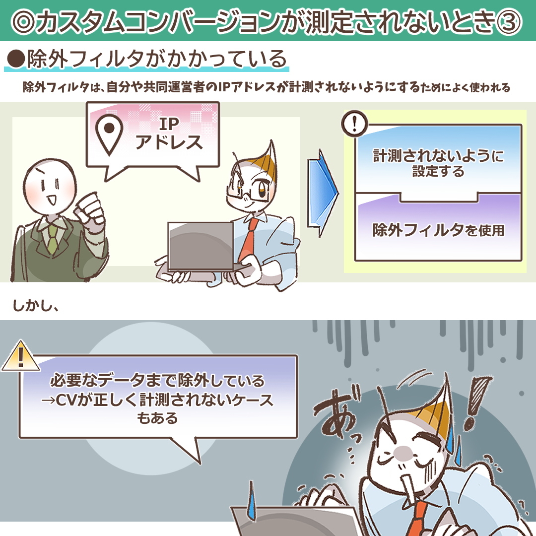 原因②:計測ツール側(例:Googleアナリティクス)での設定ミス