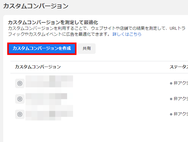 - 画面左上の「カスタムコンバージョンを作成」をクリック