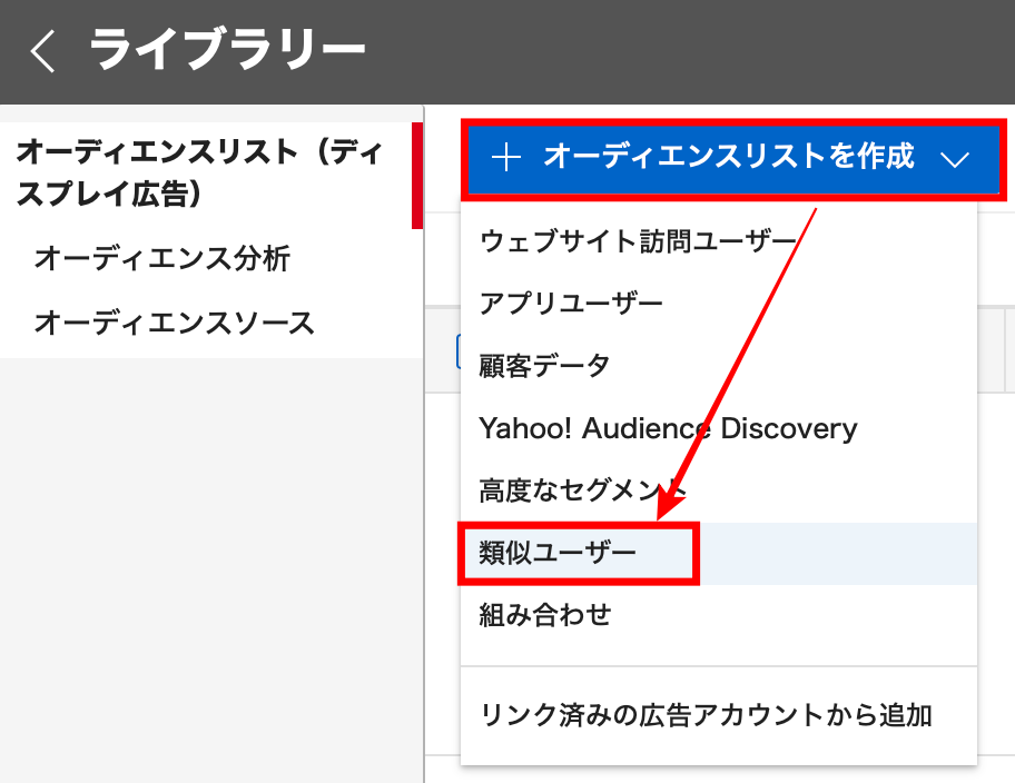 ここでは実際にYahoo!ディスプレイ広告の類似ユーザーを設定する方法を解説します。