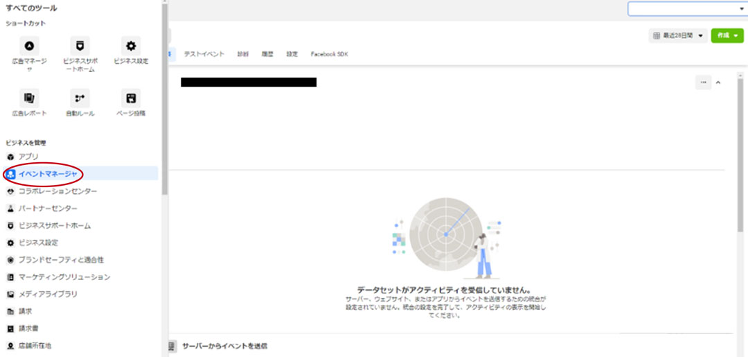 Facebookのイベントマネージャから、設置したピクセルを確認することも可能です。