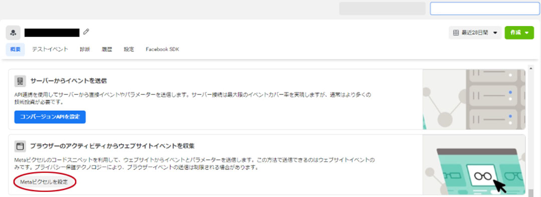 ここからは、Facebookピクセルの作成方法から設置までの手順を図解入りで説明していきます。