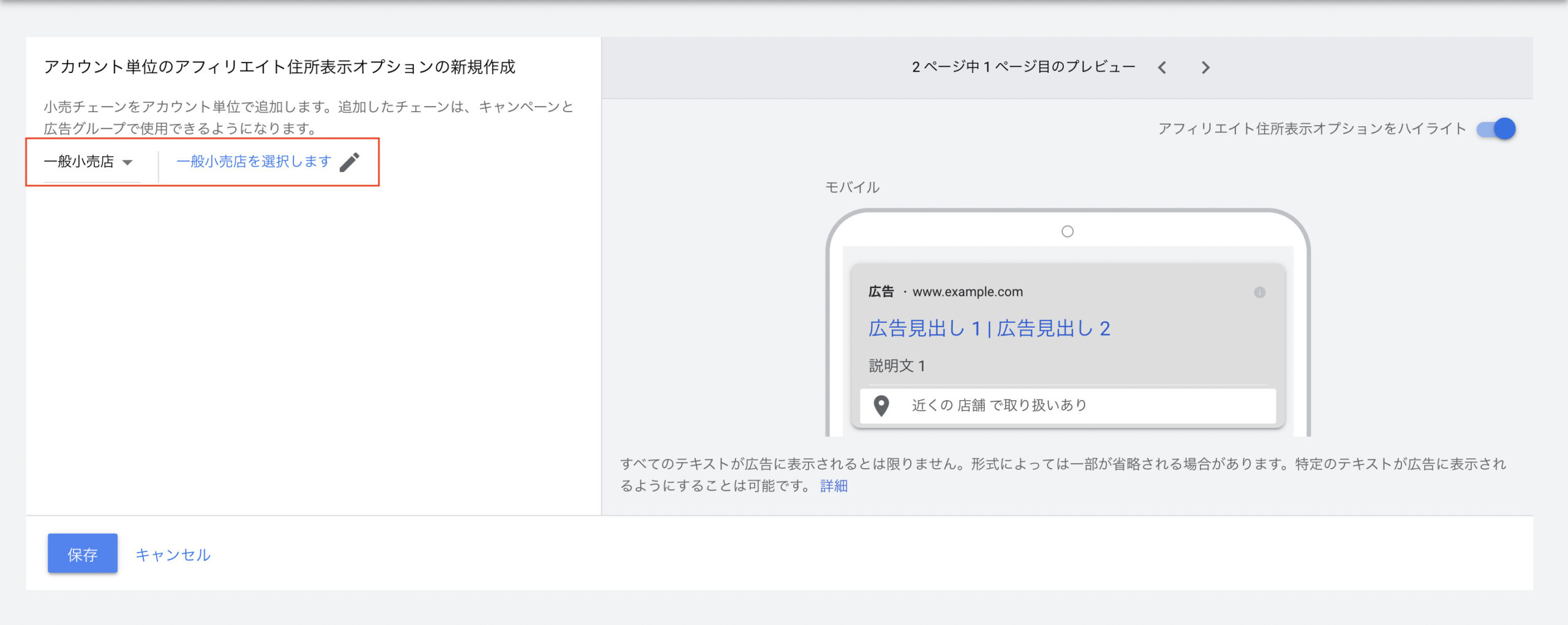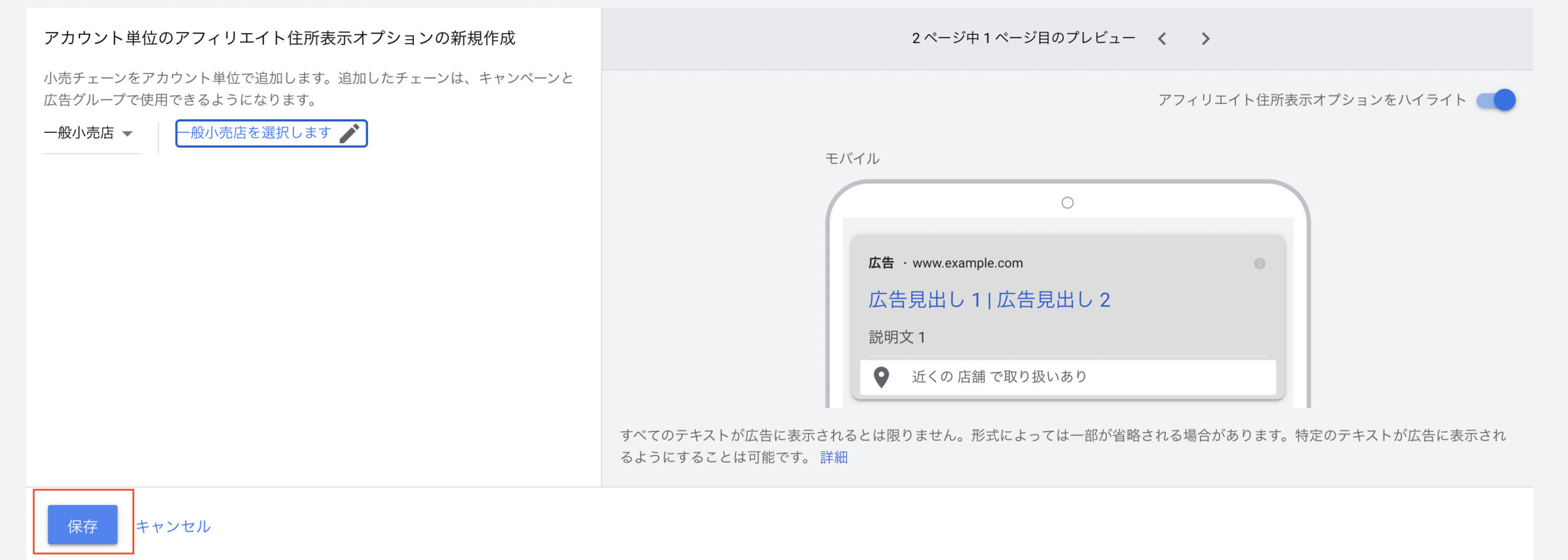 1.追加先を▼から選択し、広告に表示する電話番号を入力 2.保存をクリックしたら完了