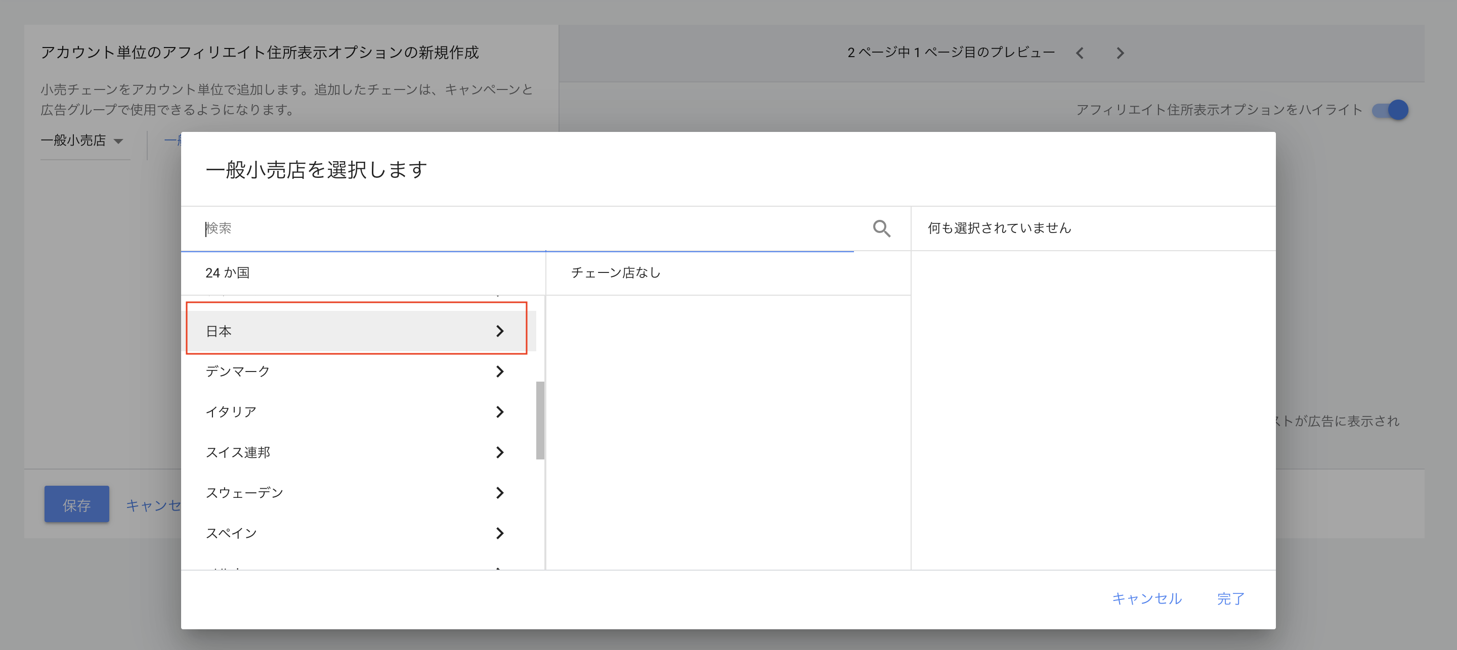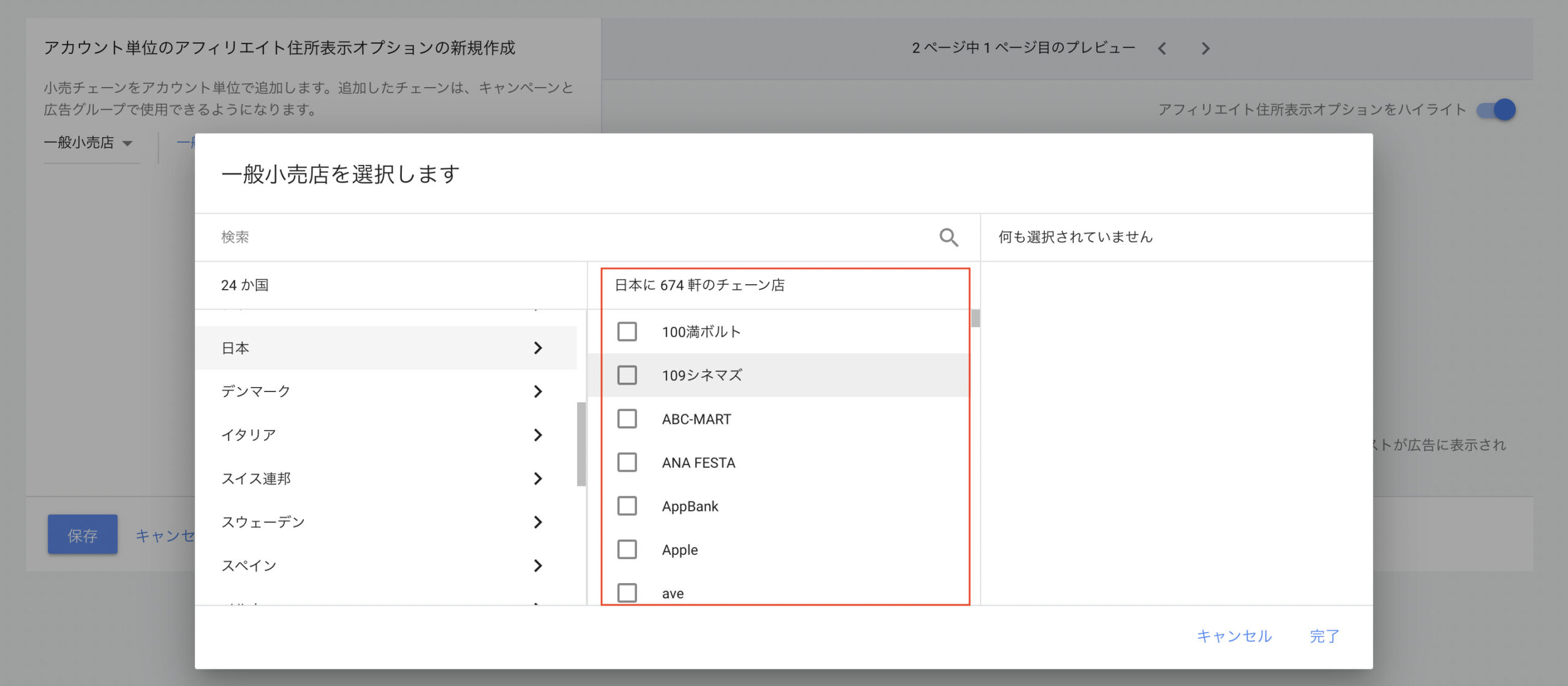 2.広告に載せたい店舗を▼横の〔選択します〕から指定する