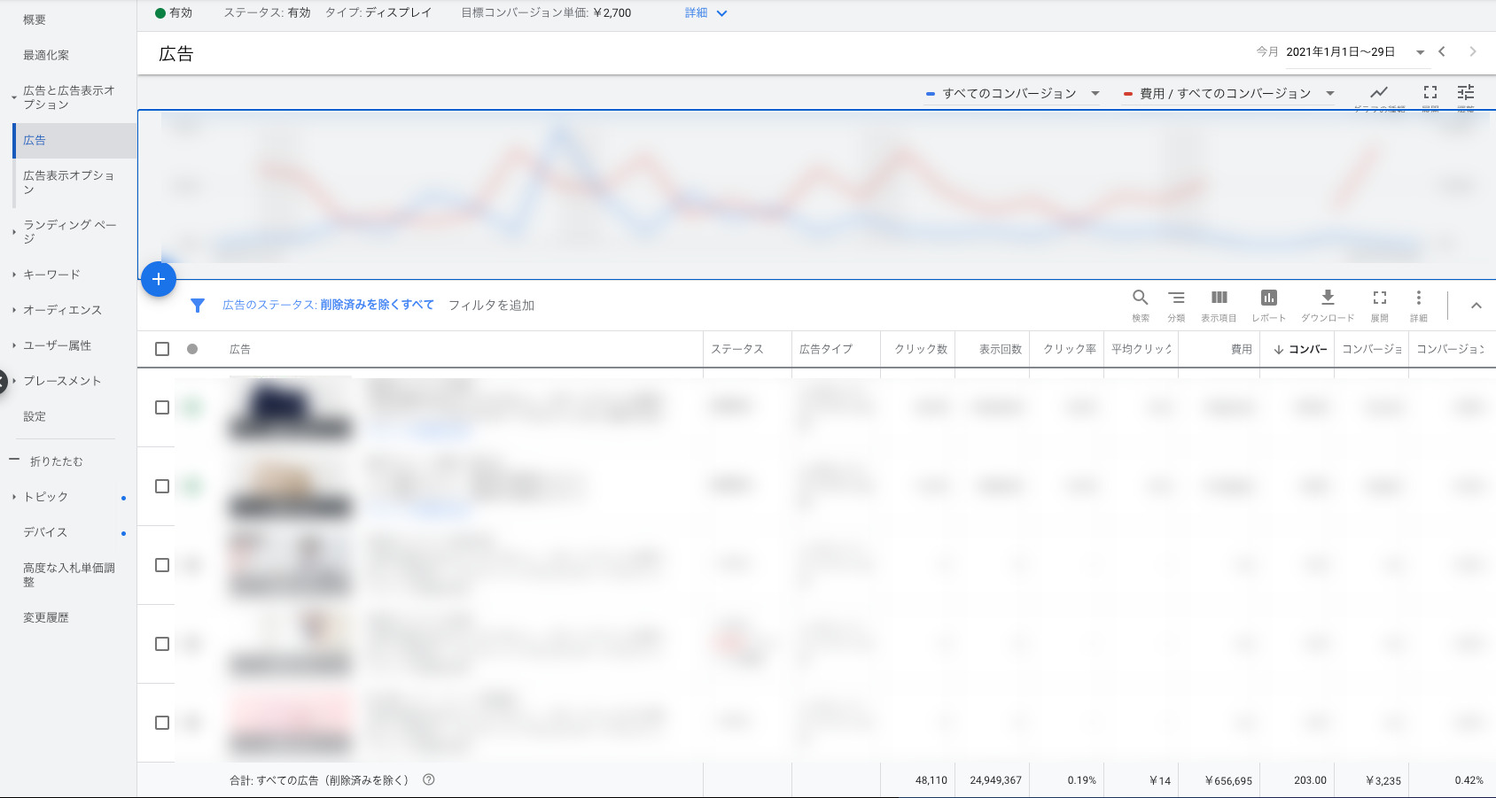 Google広告の管理画面にログインし、RDAを追加したいキャンペーン、および広告グループを選択します。 -