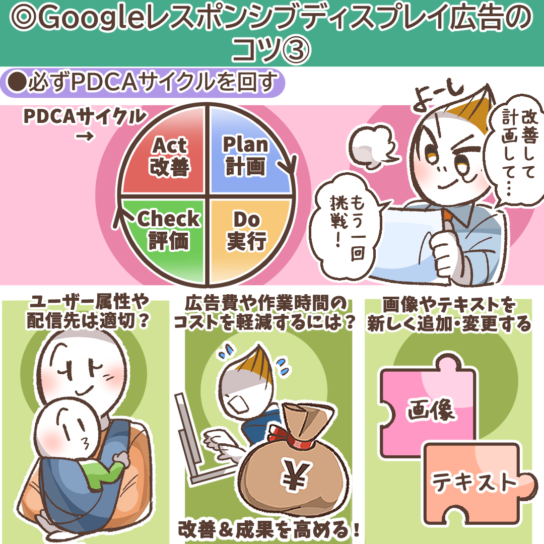RDA運用の核心は、Googleが提供するパフォーマンス評価機能を活用した、データに基づくPDCAサイクルを回すことにあります。入稿して満足するのではなく、定期的にパフォーマンスを確認し、改善アクションを取り続けることが成果向上の鍵です。
